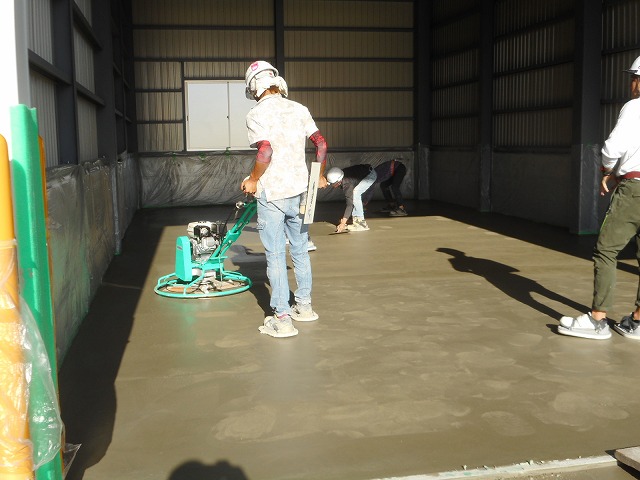 こんにちは。 工務部の市川です。 気候も大分涼しくなってきて、秋が近づいてきました。 今日はある倉庫の床のコンクリート打設がありました。 1枚目:コンクリート打設完了 2枚名:土間仕上げ用のマシーンで仕上げていきます。 3枚目:機械にコテが付いて、回転させながら効率的にコンクリートを平滑に仕上げます。 4枚目:最終仕上げは職人さんによって、丁寧に仕上げていきます。 みなさんご安全にお願い致します。 | ![]() RECENT ENTRY 2021.07.17